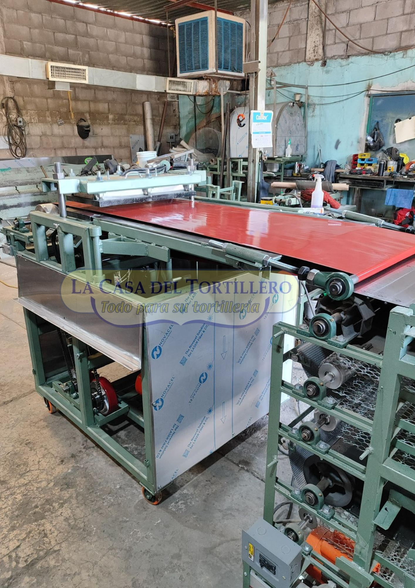 HarinaPrensas de banda de teflón cuenta con una prensa que aplasta el testal de harina a la temperatura ideal en un ángulo vertical; proporcionándote una tortilla más uniforme. Produce aproximadamente 2,400 tortillas por hora o 40 tortillas por mininuto de entre 10cm y 24cm de diámetro, un grosor de 1mm a 3mm. Cuenta con una plancha de aluminio de fácil calentamiento, a 220v.