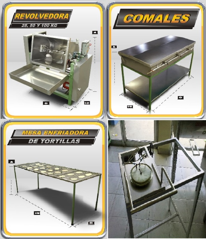 MaízRevolvedora de 25, 50 y 100 kg, fabricadas con tapas y charolas en acero inoxidable, PTR de 2", y cadena paso 50 reforzadas.